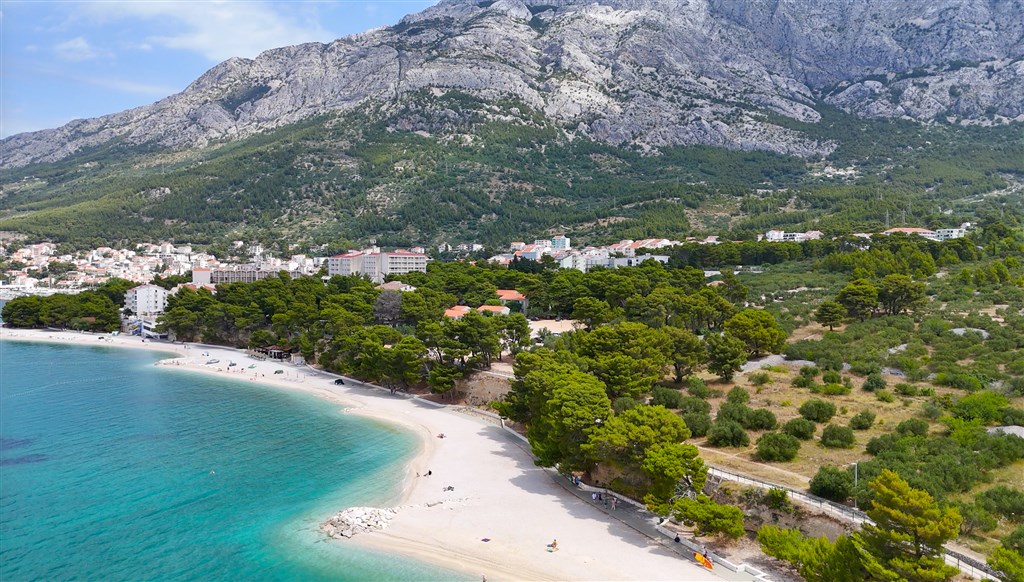 Nachádza sa tu štrkovito-piesočnatá pláž tiahnuca sa pozdĺž celej Makarskej.