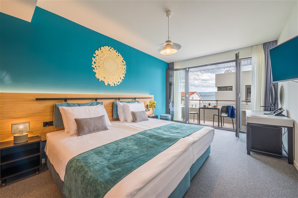 IZBY SUPERIOR - moderne zariadené klimatizované 2-lôžkové izby s možnosťou prístelky (rozkl. fotelka len pre osobu do 15,99r.) • sprcha/WC • fén • telefón • trezor • LCD TV • minibar (za poplatok) • balkón resp. balkón orientovaný na morskú stranu • izby SUPERIOR rodinné izby (NA VYŽIADANIE) - pozostáva z dvoch prepojených 2-lôžkových izieb Superior. Každá izba je vybavená dvoma lôžkami s možnosťou prístelky (rozkl. fotelka len pre osobu do 15,99r.) • sprcha/WC • fén • telefón • trezor • LCD TV • minibar (za poplatok) • balkón resp. balkón orientovaný na morskú stranu • JUNIOR SIUTE – jedna 2-lôžková spálňa • v obývacej časti 2 lôžka – rozkl. gauč len pre osoby do 15,99r.) • sprcha/WC • fén • telefón • trezor • LCD TV • minibar (za poplatok) • balkón