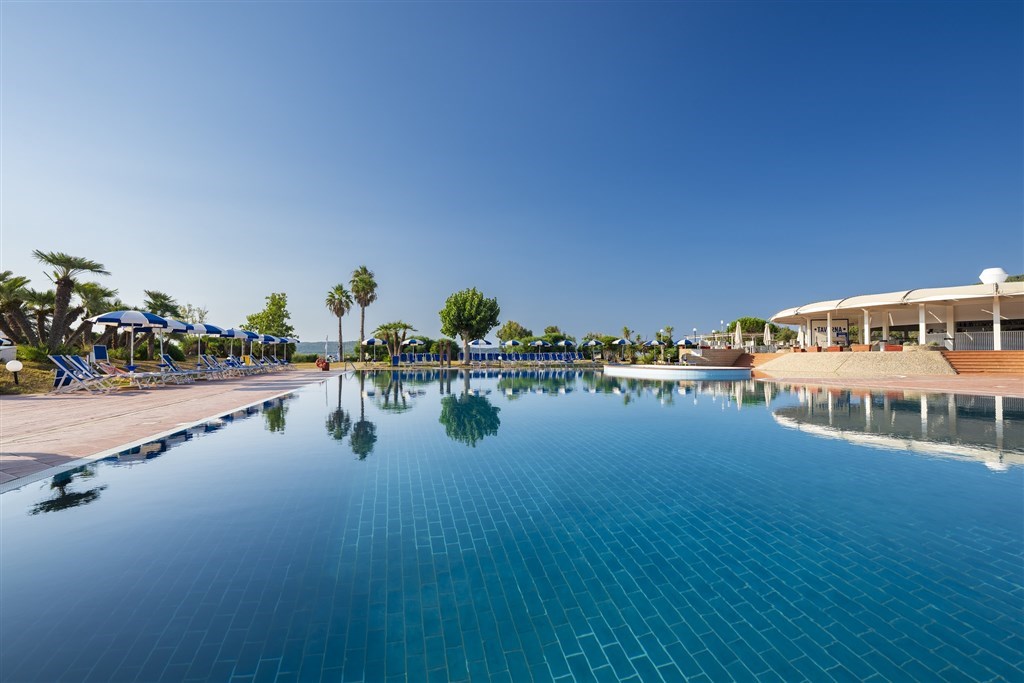 centrálna budova so službami a 3 ubytovacie bloky • vstupná hala s recepciou • hlavná reštaurácia • all inclusive bar • bar pri bazéne a bar na pláži (za poplatok) • bazén • 2 detské bazény • slnečníky a ležadlá pri bazénoch a na pláži (zdarma, plážové osušky za vratný depozit a poplatok) • 11 tenisových kurotv • stolný tenis • plážový volejbal • zóna pre jogu • bocca • posilňovňa • kaderníctvo • wifi • detský miniklub a ihrisko •denné a večerné hotelové animácie