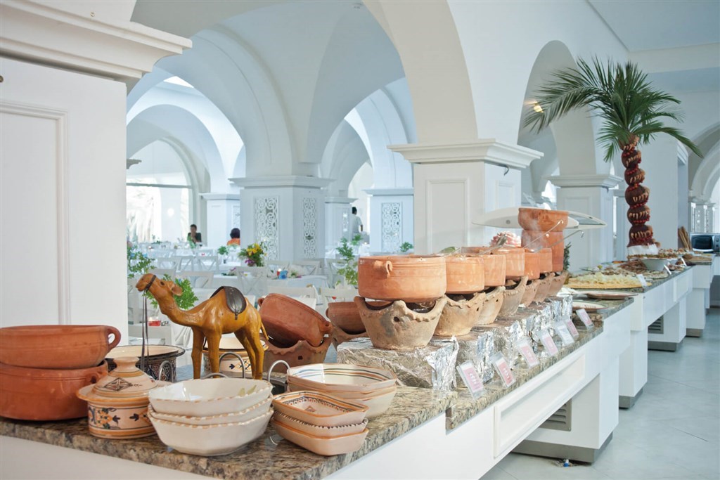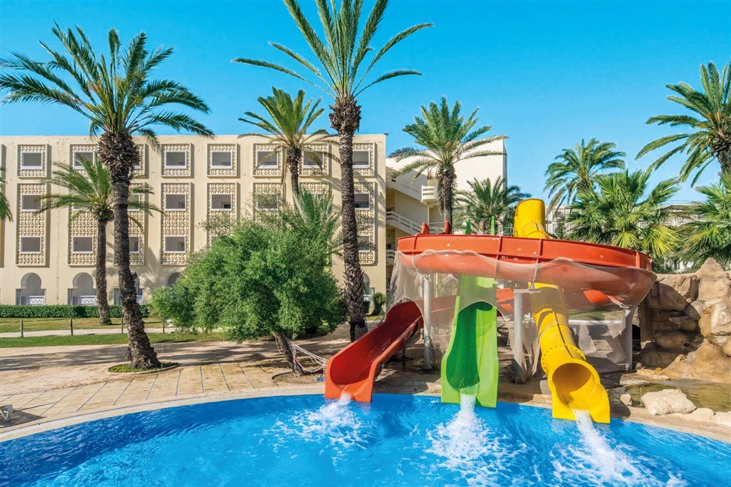 hlavná budova a pavilóny • vstupná hala s recepciou a posedením • hlavná reštaurácia • a´la carte reštaurácia Bocca beach (za poplatok) • snack pool Palmeraie - reštaurácia pri bazéne • plážový bar • lobby bar • pool bar • slnečníky, ležadlá a matrace pri bazéne (zdarma) • plážové osušky (za vratný depozit) • maurská kaviareň (za poplatok) • wifi v areáli hotela (zdarma) • bazén s divokou riekou • bazén s toboganmi • 2 detské bazény, jeden s atrakciami • vnútorný bazén • detské ihrisko • miniklub • plážový volejbal • minigolf • fitness centrum (za poplatok) • hotelové animácie