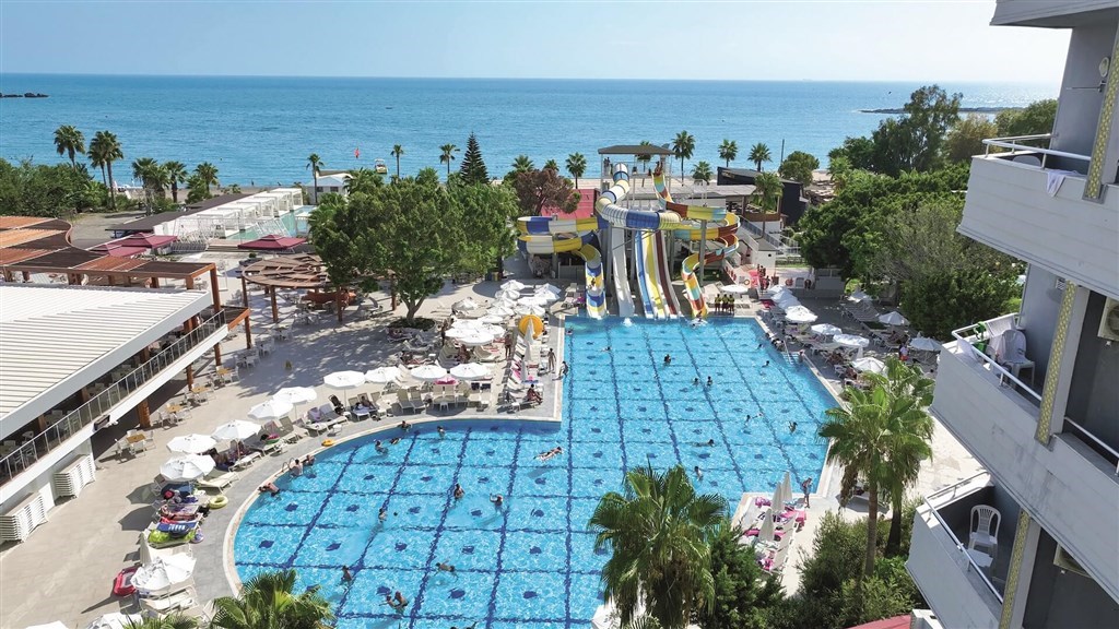 vstupná hala s recepciou • hlavná reštaurácia • 2 a´la carte reštaurácie • lobby bar • pool bar • beach bar • snack bar • cukráreň • rozsiahly vonkajší bazén s 3 toboganmi • nekonečný (infinity) bazén • detský bazén • vnútorný bazén • SPA a wellness centrum • sauna • fitness centrum • miniklub • detské ihrisko • vodné športy • amfiteáter • medzinárodné hotelové animácie • wifi